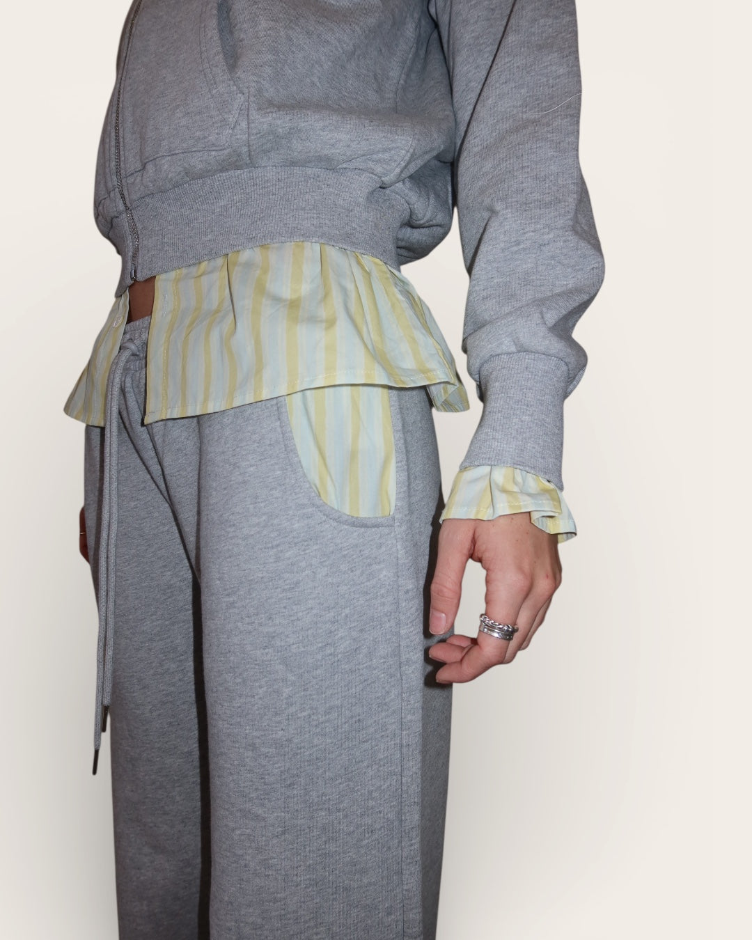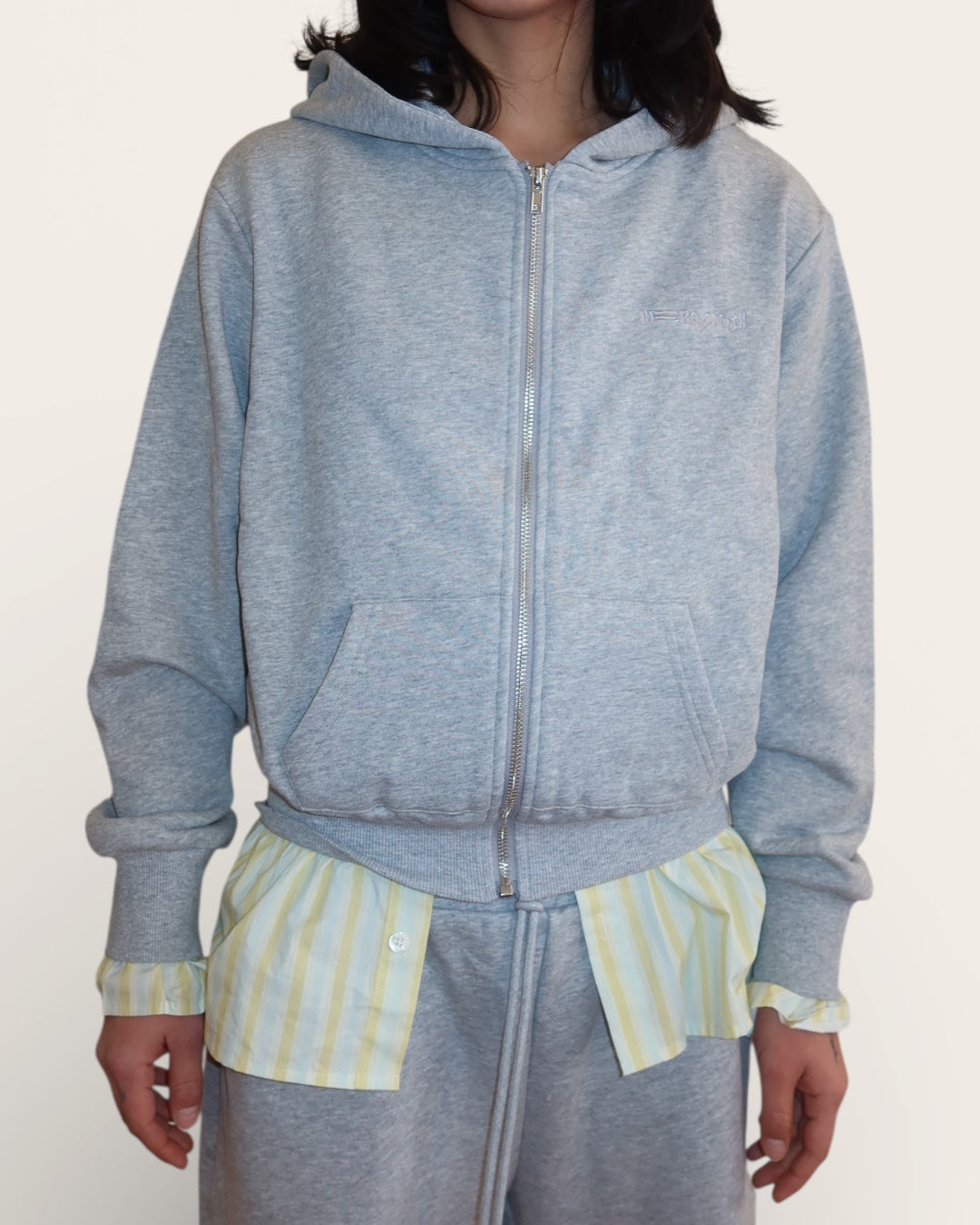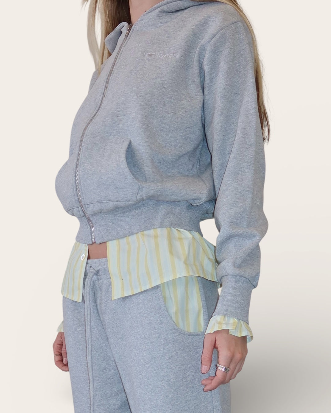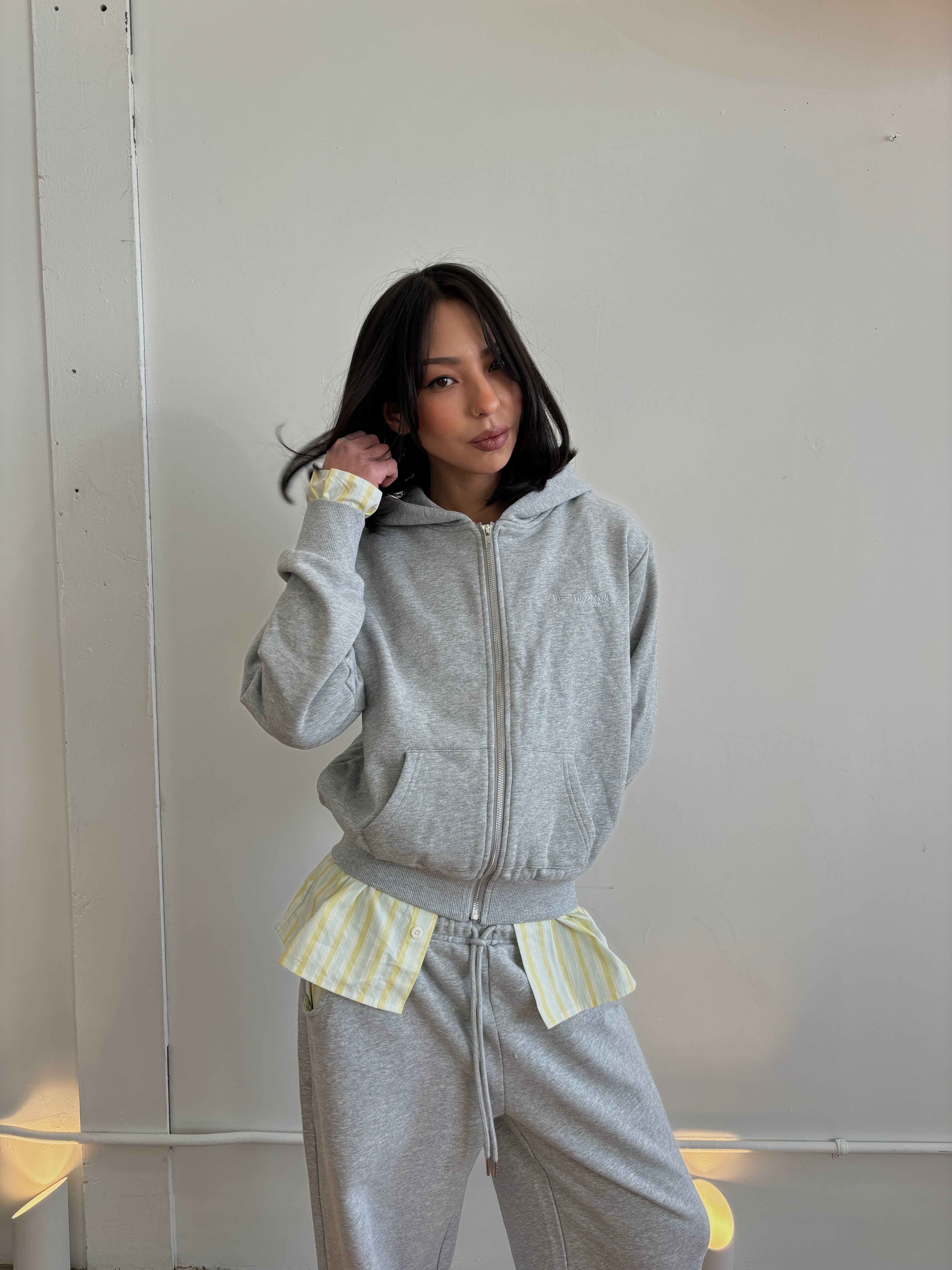 Our coziest hoodie yet! In the softest 100% cotton french terry with cotton shirting layered at the hem and cuffs ❤︎ ₊˚⊹♡